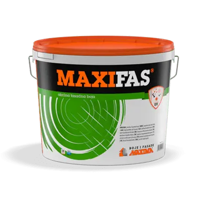 MAXIFAS je kvalitetna fasadna boja, na bazi akrilata. Dobro prianja na podlogu, ima odličnu pokrivnu moć, paropropusnost, vodoodbojnost i postojanost na atmosferske uticaje i UV zračenje. Upotrebljava se za zaštitu i dekoraciju spoljašnjih i unutrašnjih površina od: betona, produženog maltera, gasbetona, azbest-cementa i sl. Ne preporučuje se za bojenje svežih, još nekarbonizovanih krečnih i krečno-cementnih površina (min. 28 dana). Proizvodi se u beloj boji i kao baza za nijansiranje na MAXIMIX sistemu.